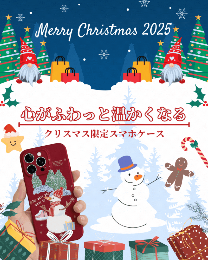 「クリスマスシリーズ」カートゥーンスノーマンプリントフィルム加工スマホケース