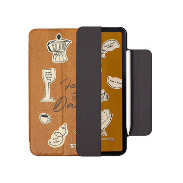 コーヒーイラストデザインペンスロット付きマグネット式iPadケース $538.00 から /