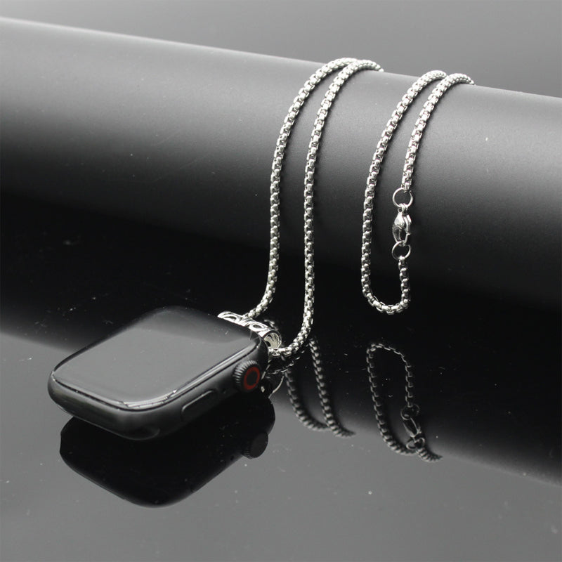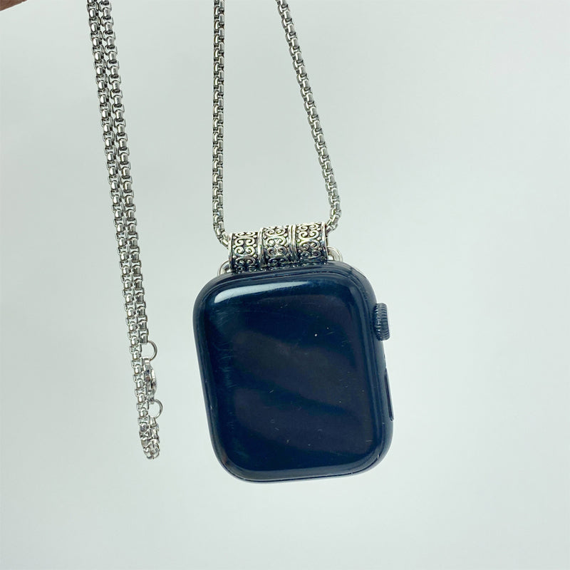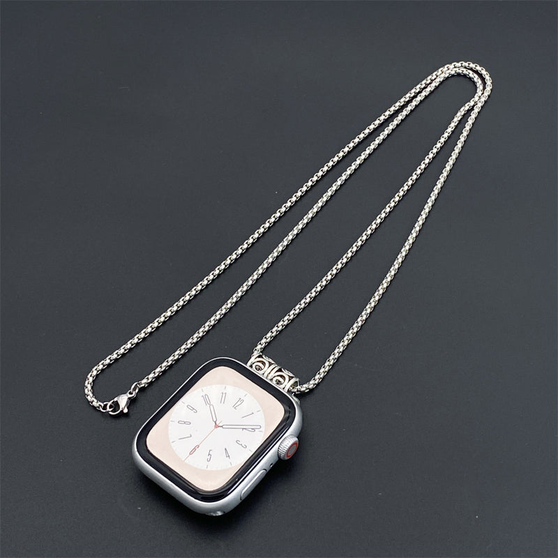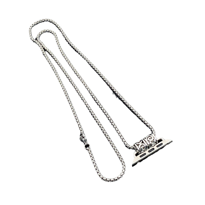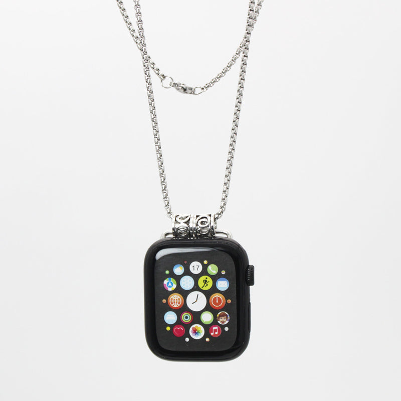 シンプルでおしゃれなデザインが魅力のApple Watchチェーンネックレス。時計をアクセサリーのように身につけられる、新感覚のアイテムです。カジュアルにもフォーマルにも合わせやすく、ファッションのアクセントとして活躍します。
