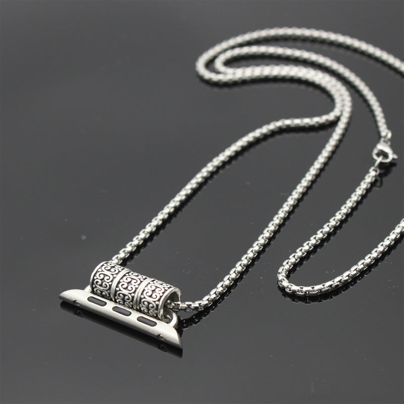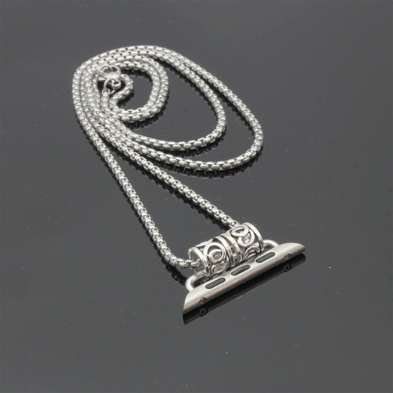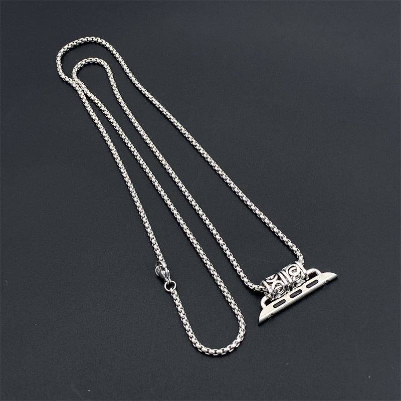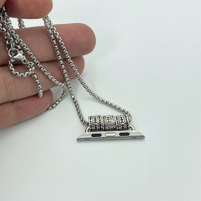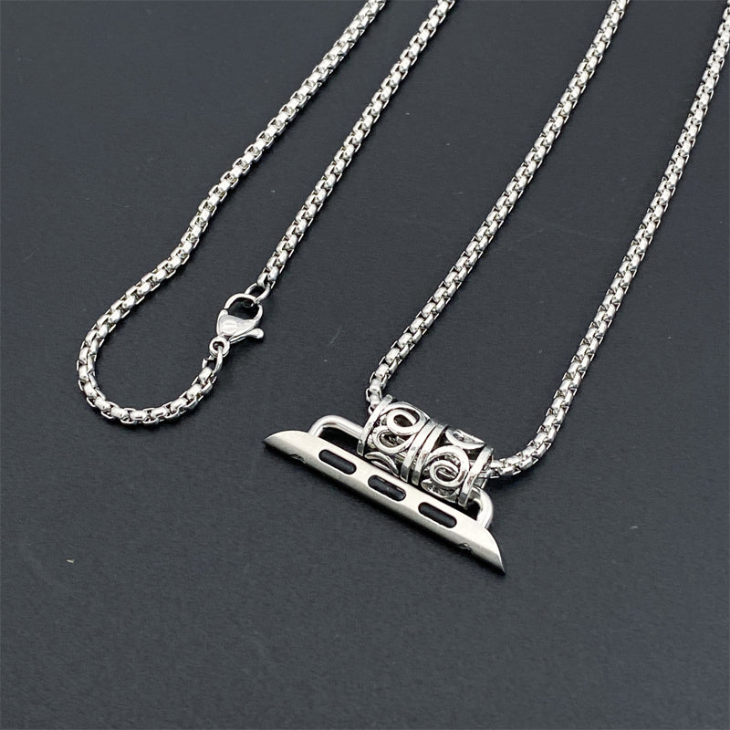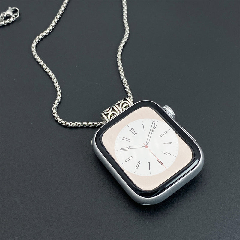 シンプルでおしゃれなデザインが魅力のApple Watchチェーンネックレス。時計をアクセサリーのように身につけられる、新感覚のアイテムです。カジュアルにもフォーマルにも合わせやすく、ファッションのアクセントとして活躍します。