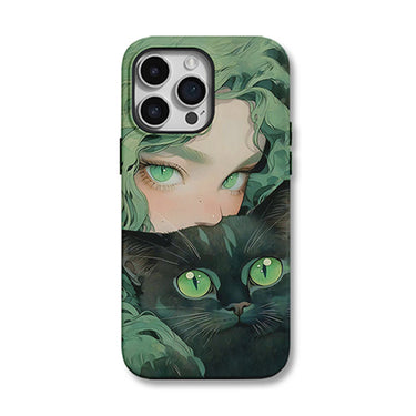 グリーンアイの猫少女デザイン二重構造マグネット式スマホケース $213.00 から /