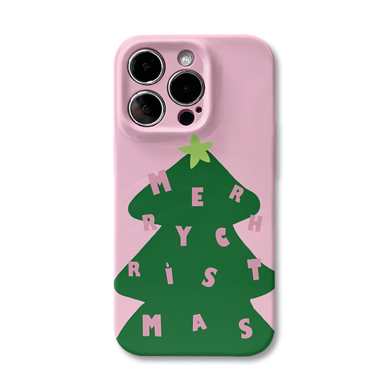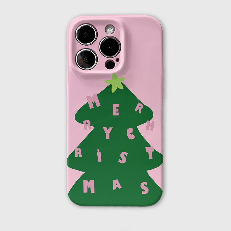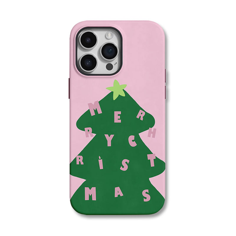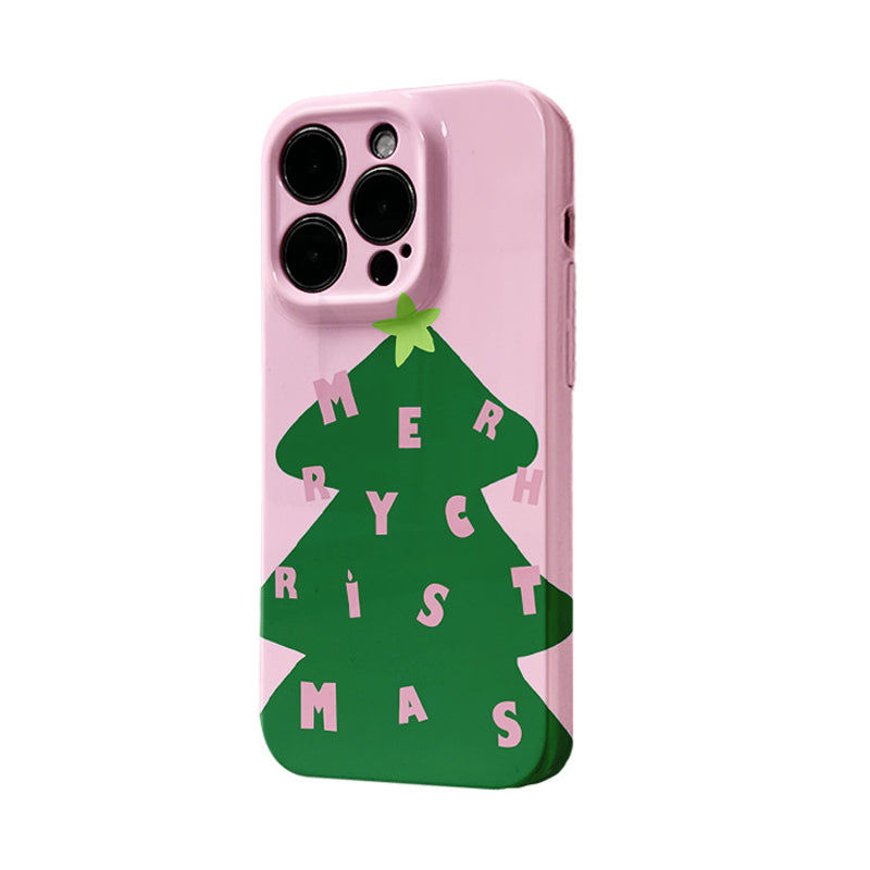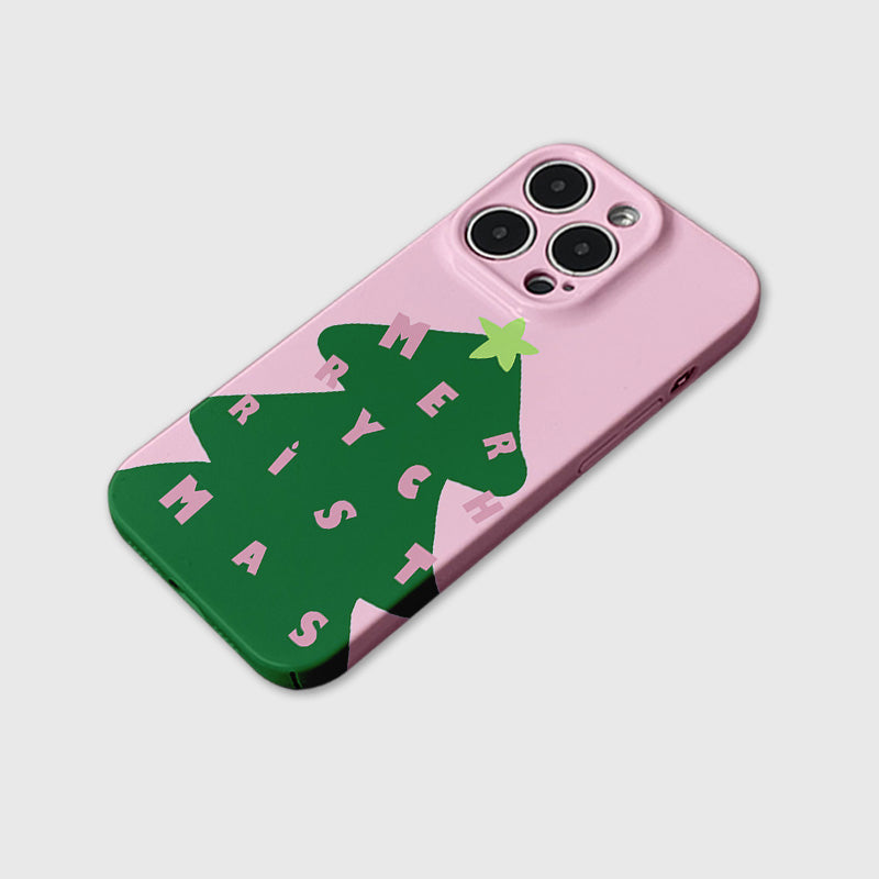 「クリスマスシリーズ」ピンクベース×クリスマスツリーフィルム加工スマホケース