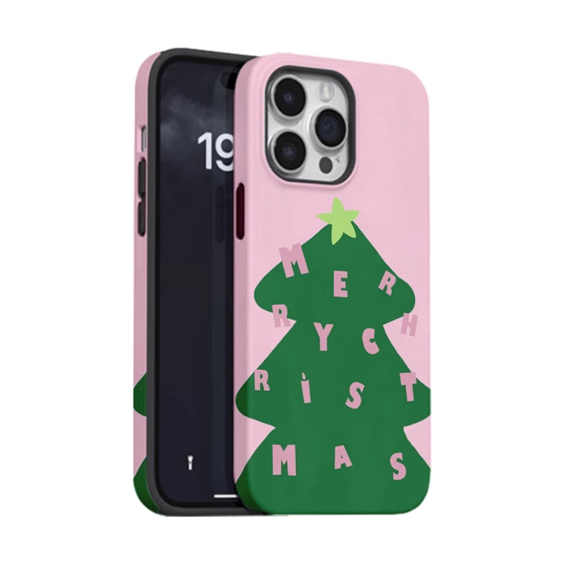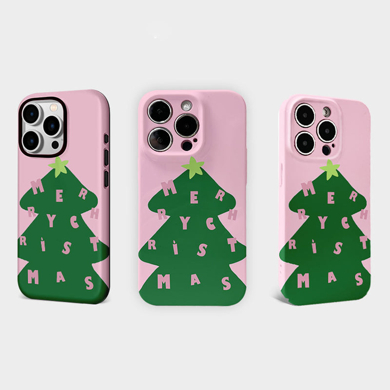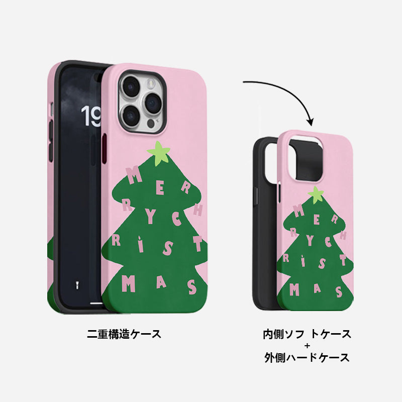 柔らかなピンクベースに、MERRY CHRISTMASの英字プリントと可愛いクリスマスツリーを組み合わせた、ホリデー気分たっぷりのスマホケース。軽量でスリムな単層タイプと、耐衝撃性に優れた二重構造タイプの2種類をご用意しており、スタイルに合わせてお選びいただけます。また、142度の真空3D熱転写フィルム技術を採用し、ケース全体に美しいデザインをプリント。擦れに強く、色落ちしにくく、上品な光沢と高級感のある仕上がりで、冬のコーディネートにも自然に馴染みます。季節感たっぷりで、自分用にはもちろん、クリスマスギフトにもおすすめのクリスマス限定アイテムです。