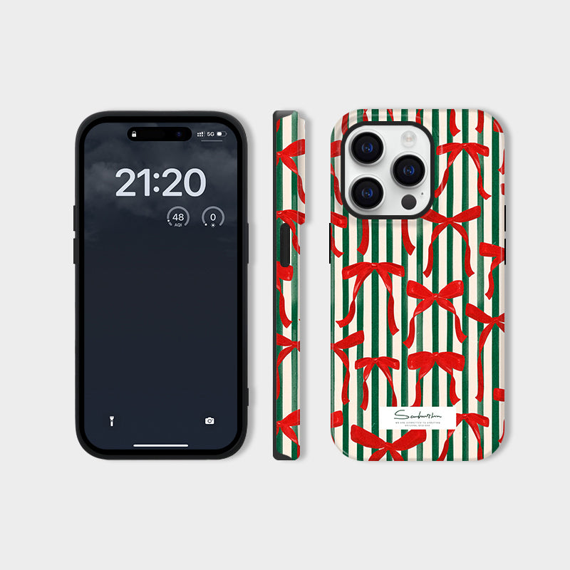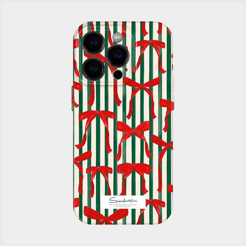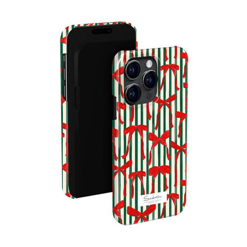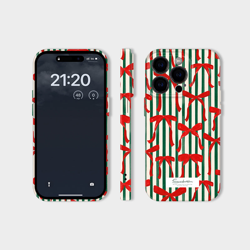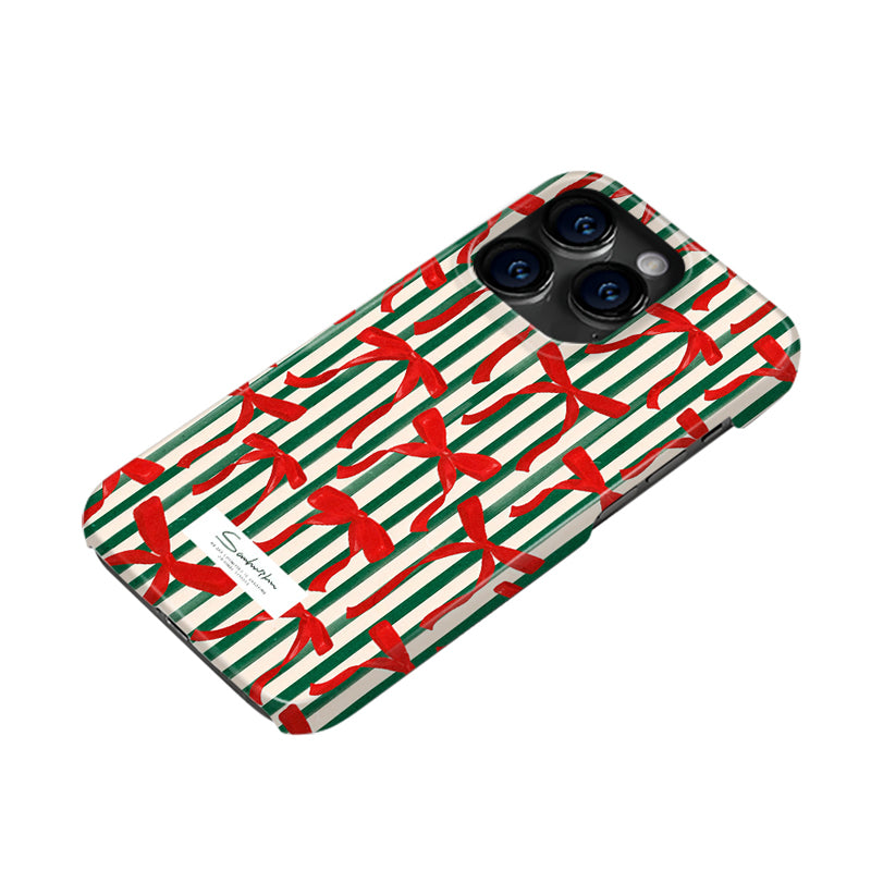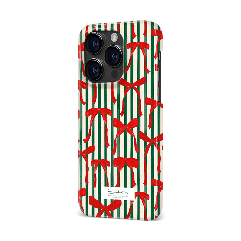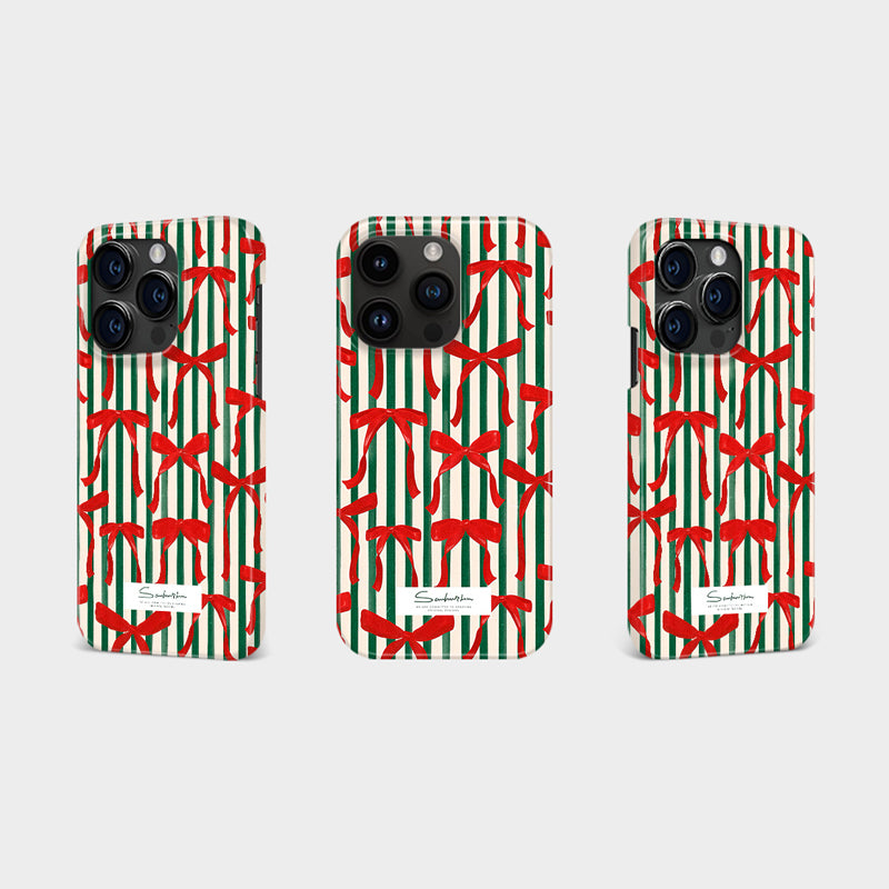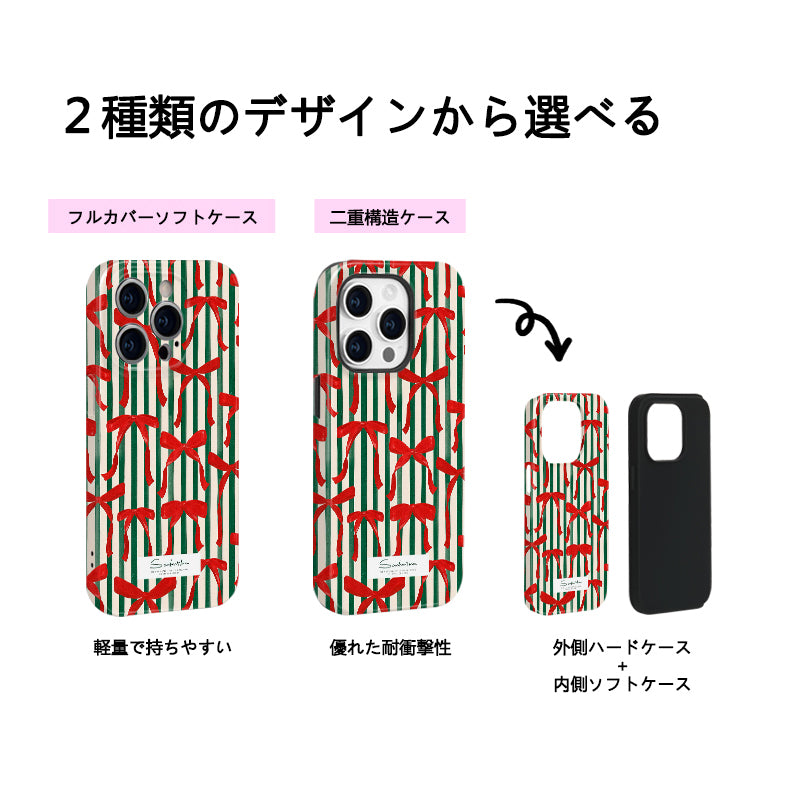 「クリスマスシリーズ」ストライプ柄×クリスマスリボンフィルム加工スマホケース