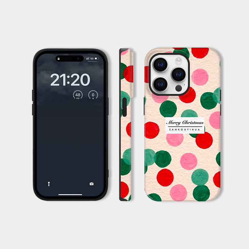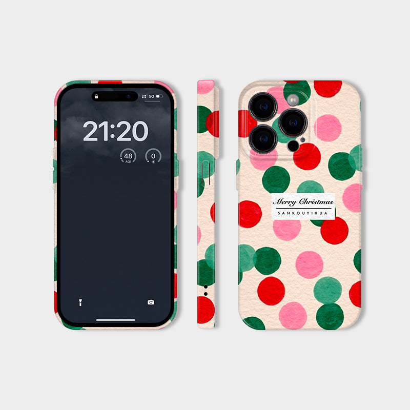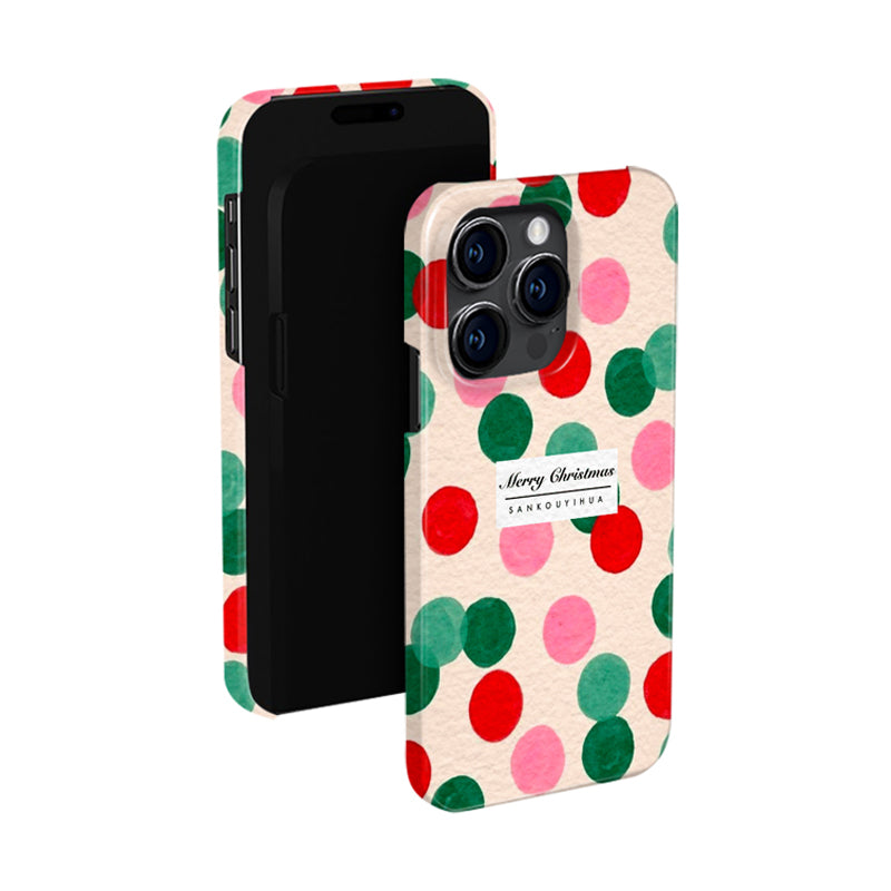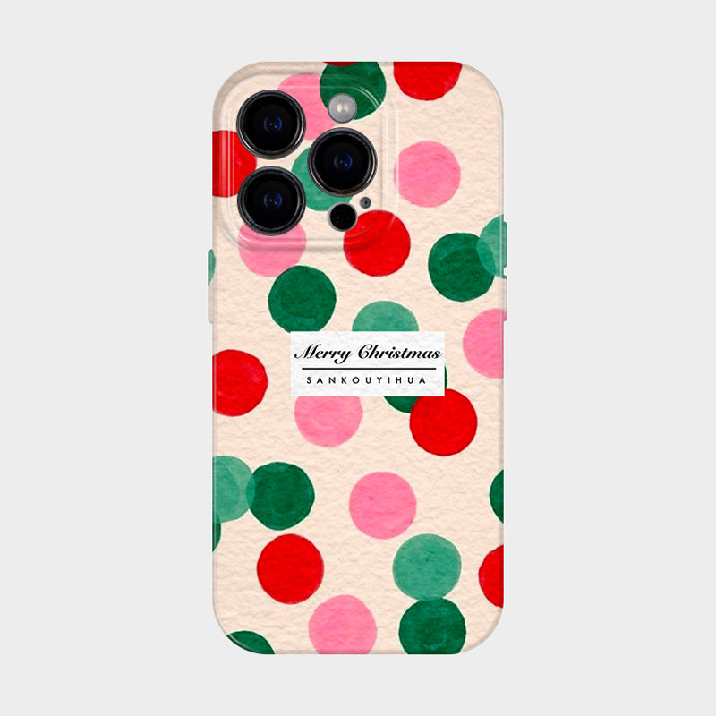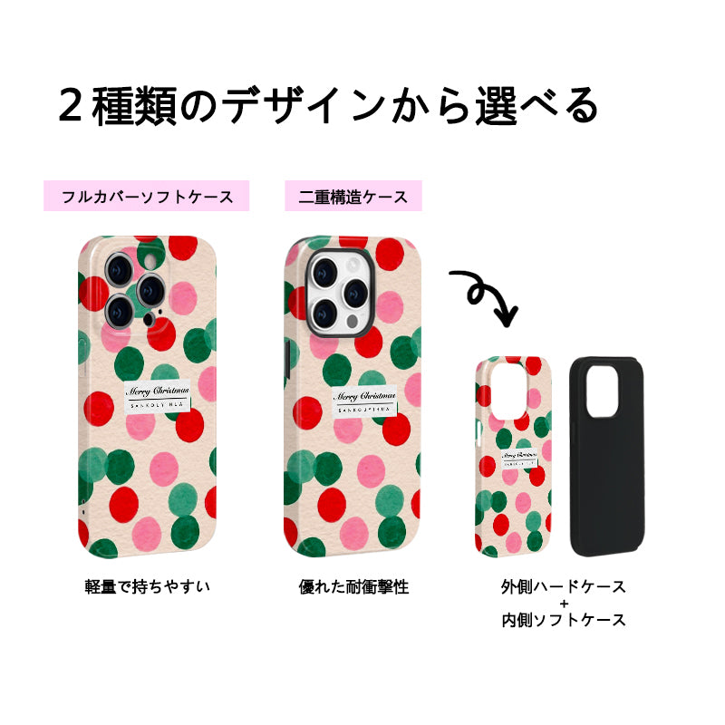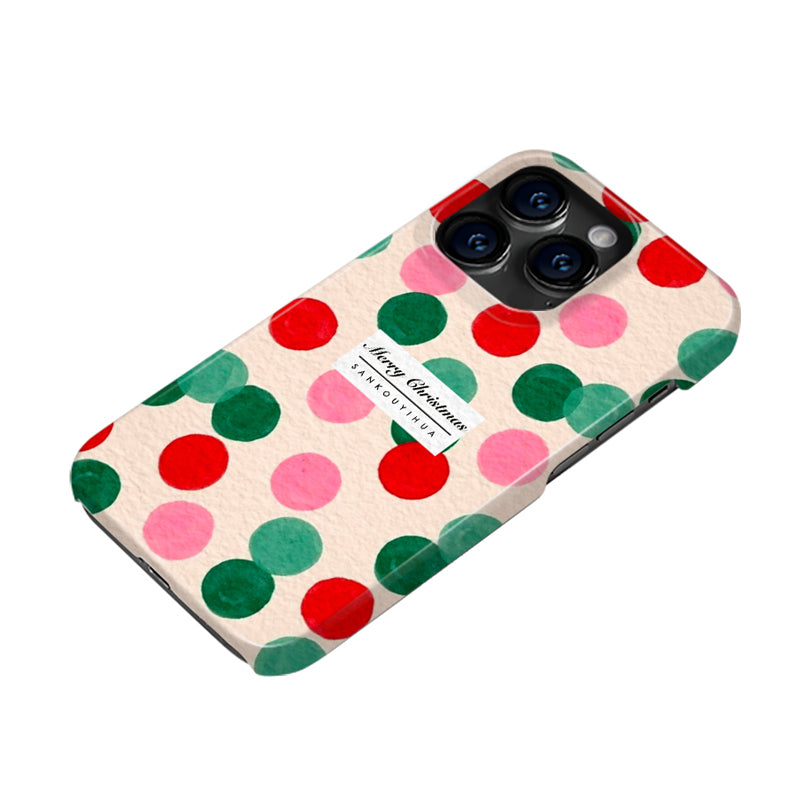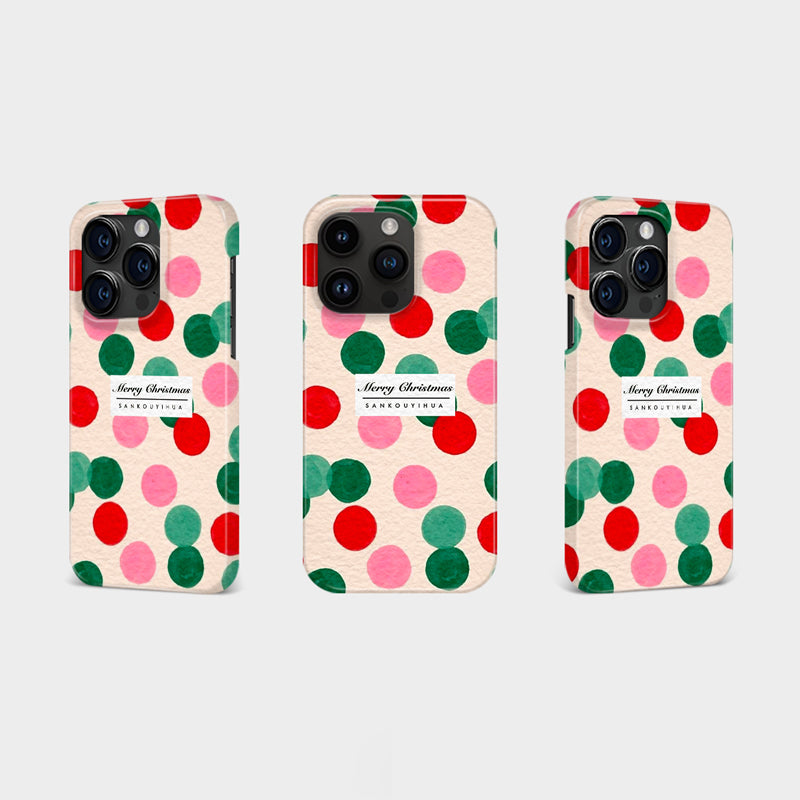 「クリスマスシリーズ」カラフルクリスマスドット柄フィルム加工スマホケース