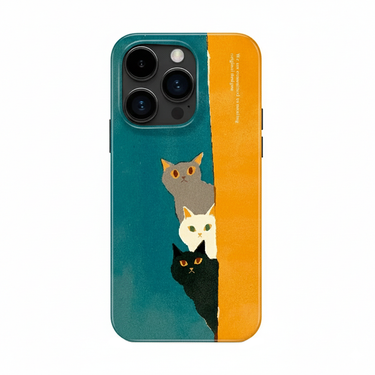 3匹の猫モチーフブルー×イエロー二重構造フィルム加工スマホケース $227.00 /43% Off