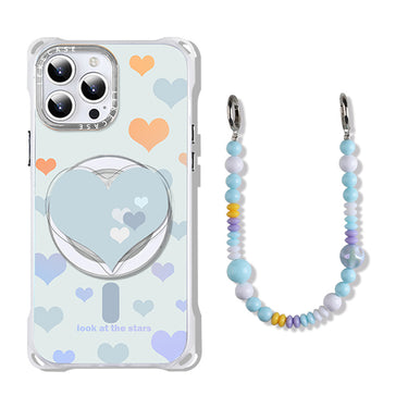 ブルーハート柄スタンド&ストラップ付きマグネット式スマホケース $395.00 から /