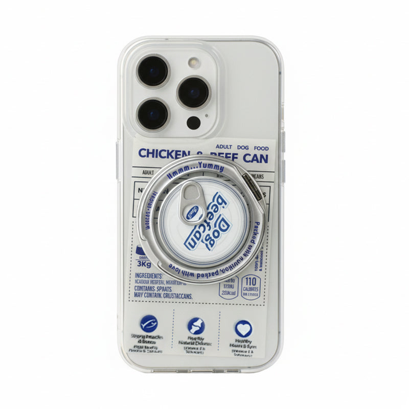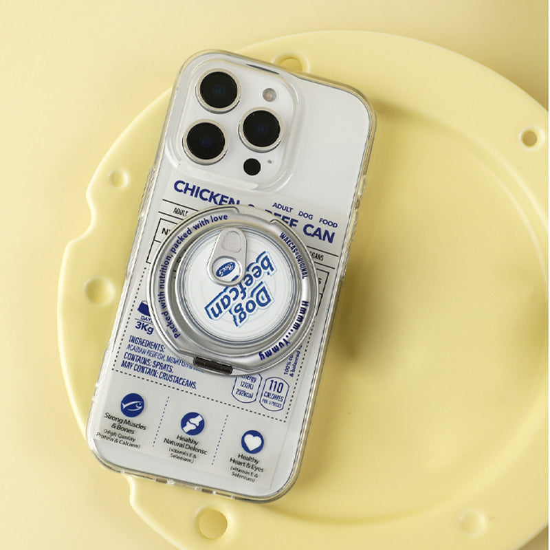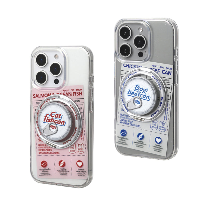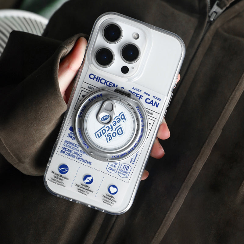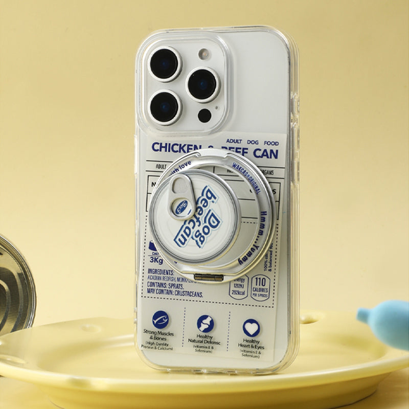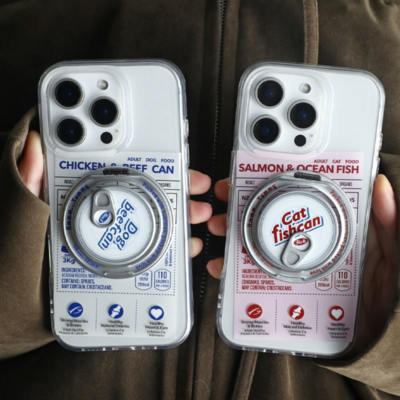 個性派ペットフード缶モチーフ回転スタンド一体型スマホケース