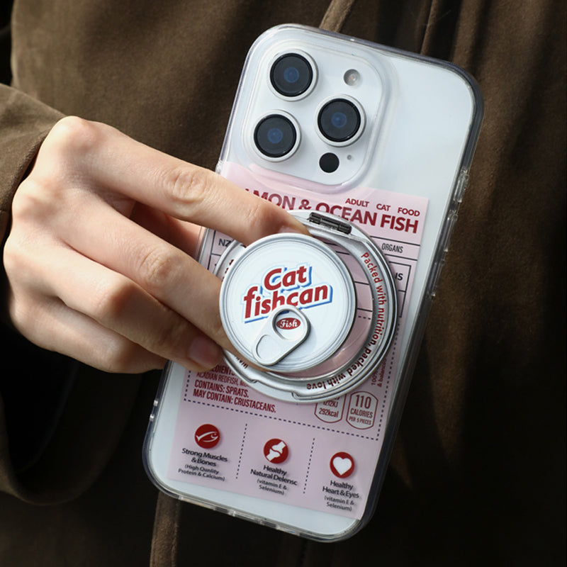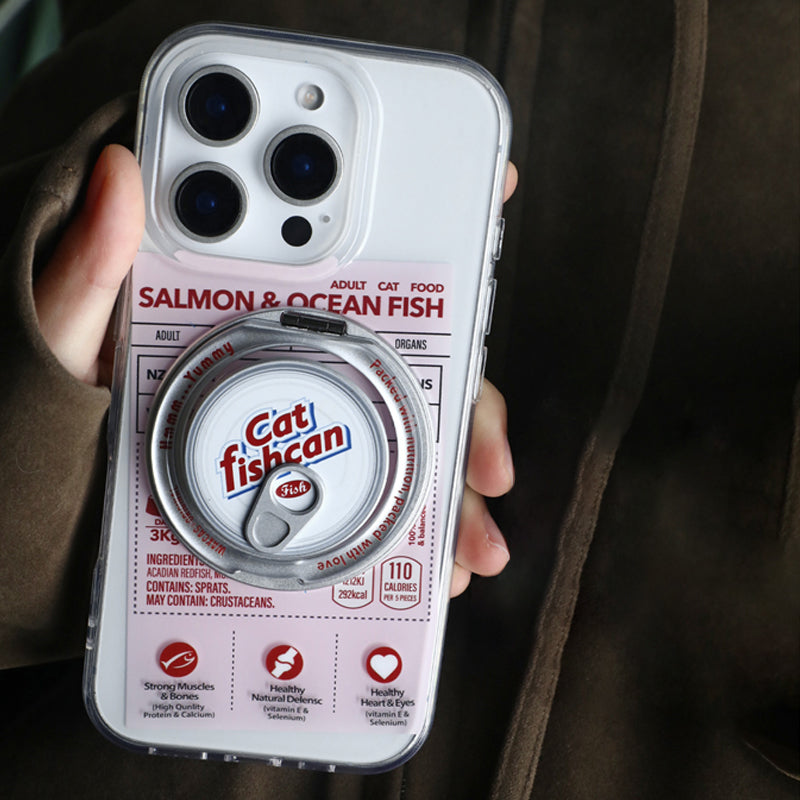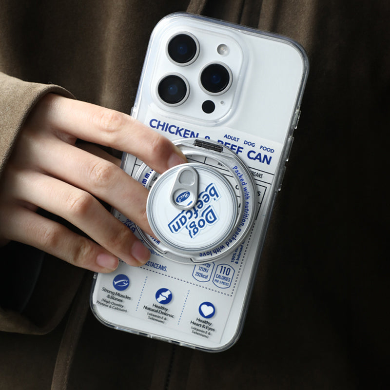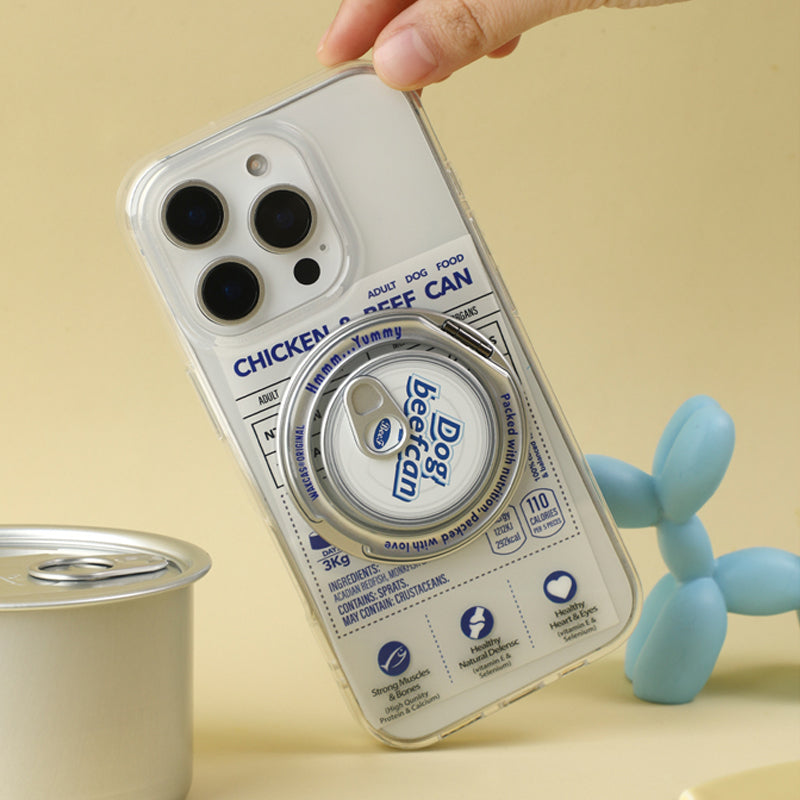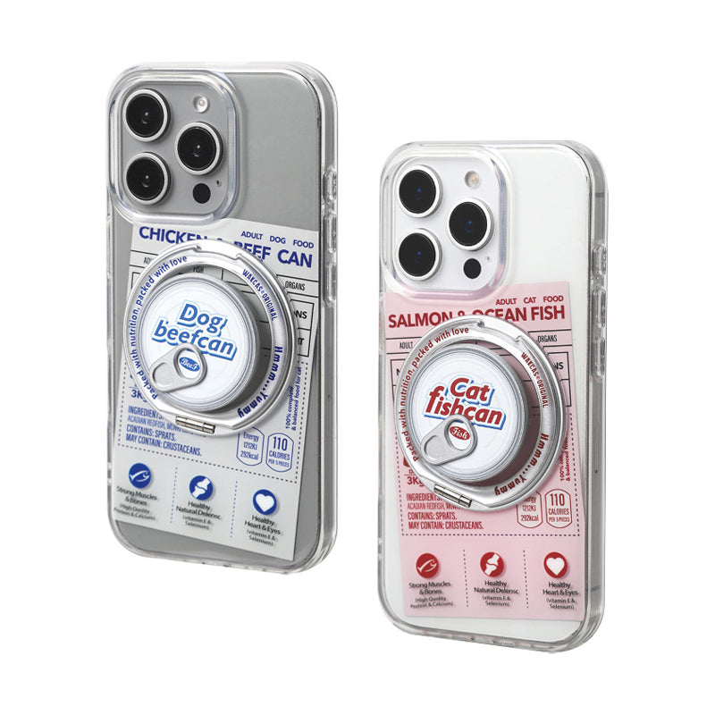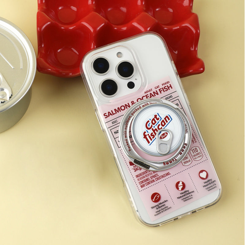 個性派ペットフード缶モチーフ回転スタンド一体型スマホケース