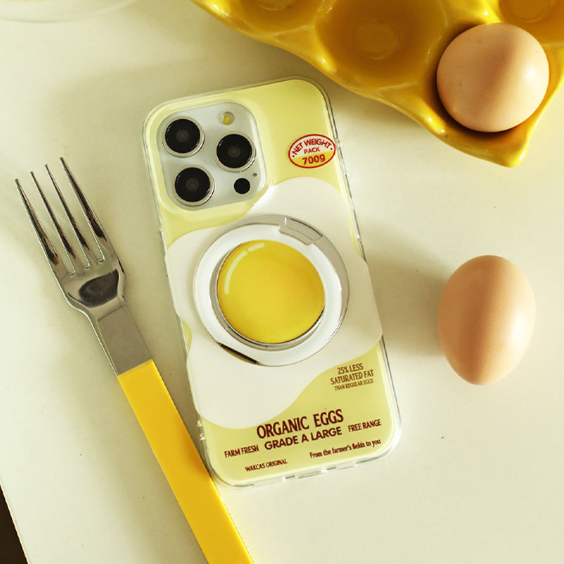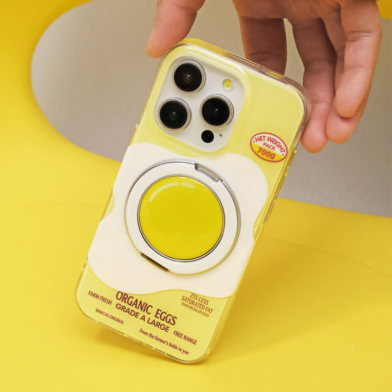 可愛い目玉焼きモチーフ回転スタンド一体型スマホケース