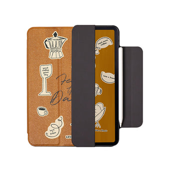 コーヒーイラストデザインペンスロット付きマグネット式iPadケース