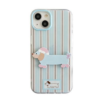 韓国風ストライプ柄ダックスフンド立体デザインストラップ付きスマホケース