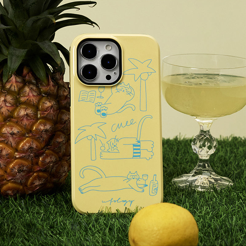 可愛い猫イラスト単層/二重構造フィルム加工スマホケース