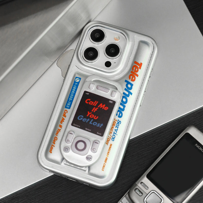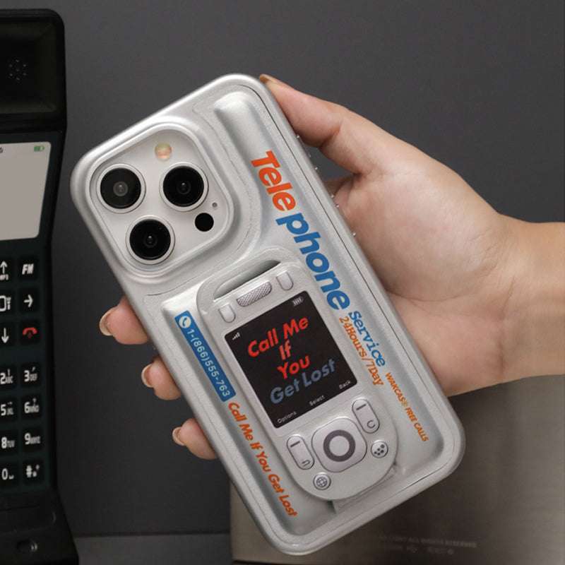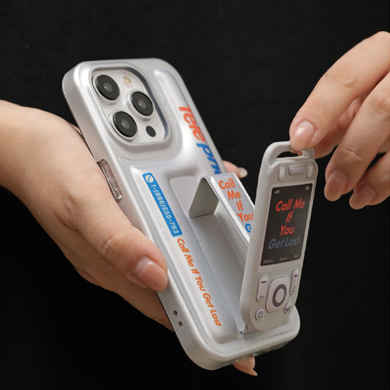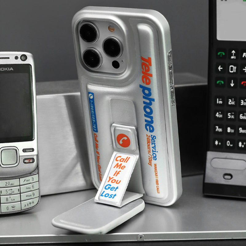 レトロなモバイルデザインが印象的なスタンド一体型スマホケース。内部にはクッション素材が入っており、衝撃を和らげてスマホをしっかり保護します。背面のスタンド機能で、動画視聴やビデオ通話も快適。遊び心のあるデザインと実用性を兼ね備えた、おしゃれなアイテムです。