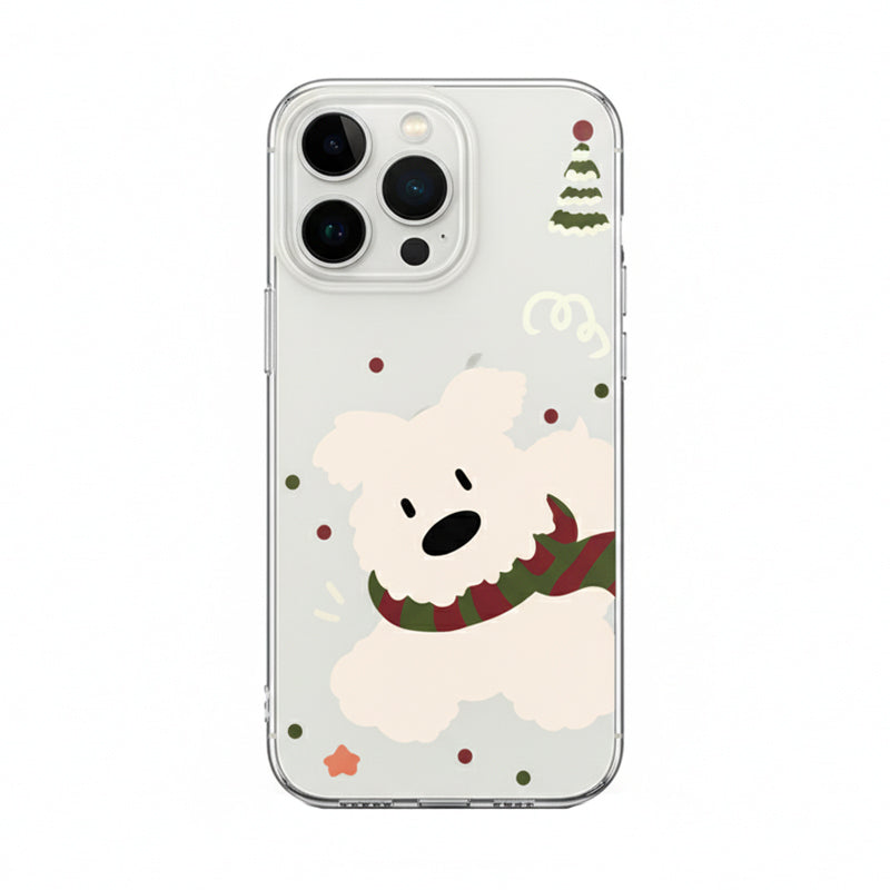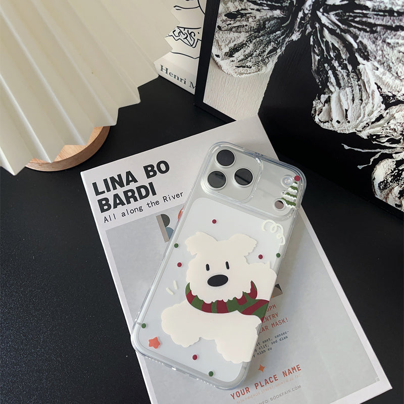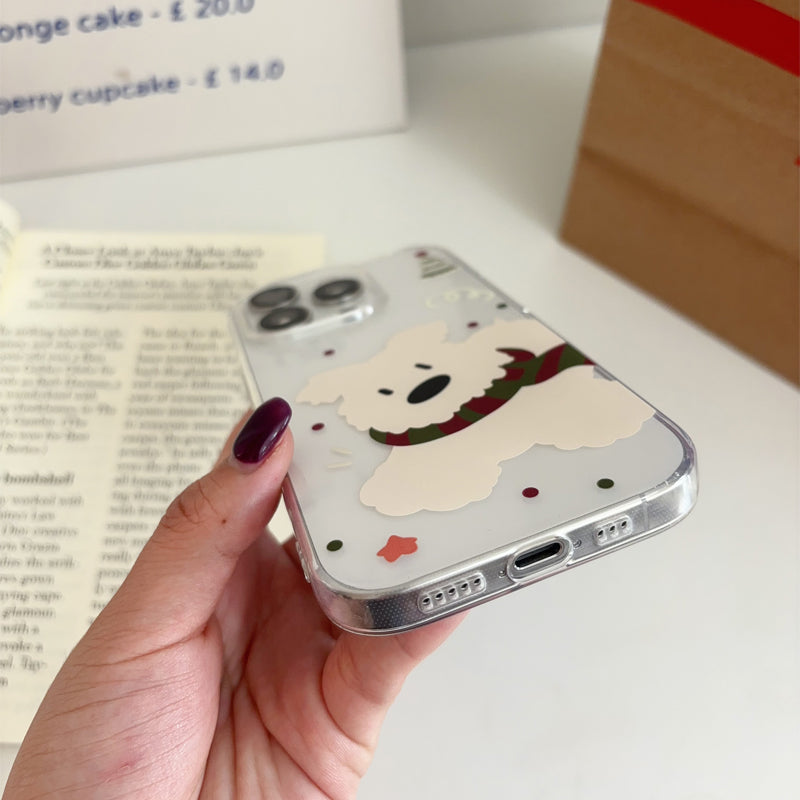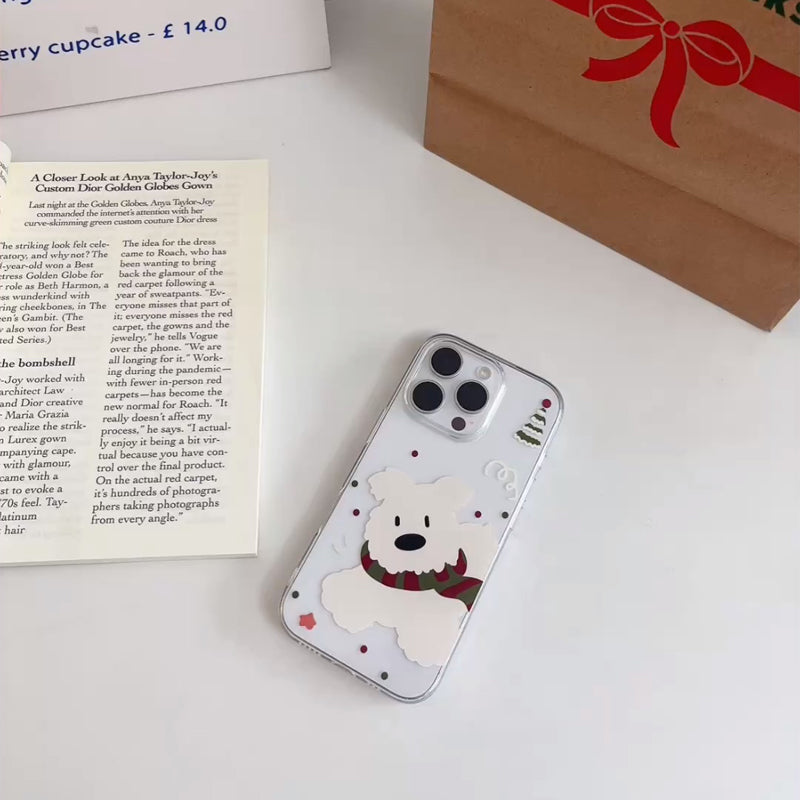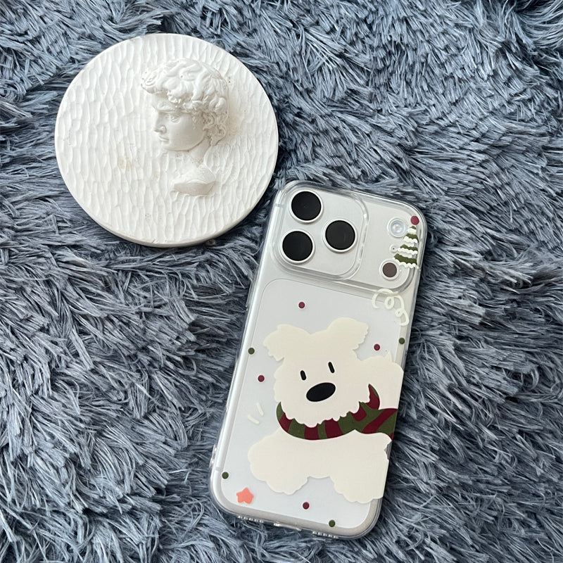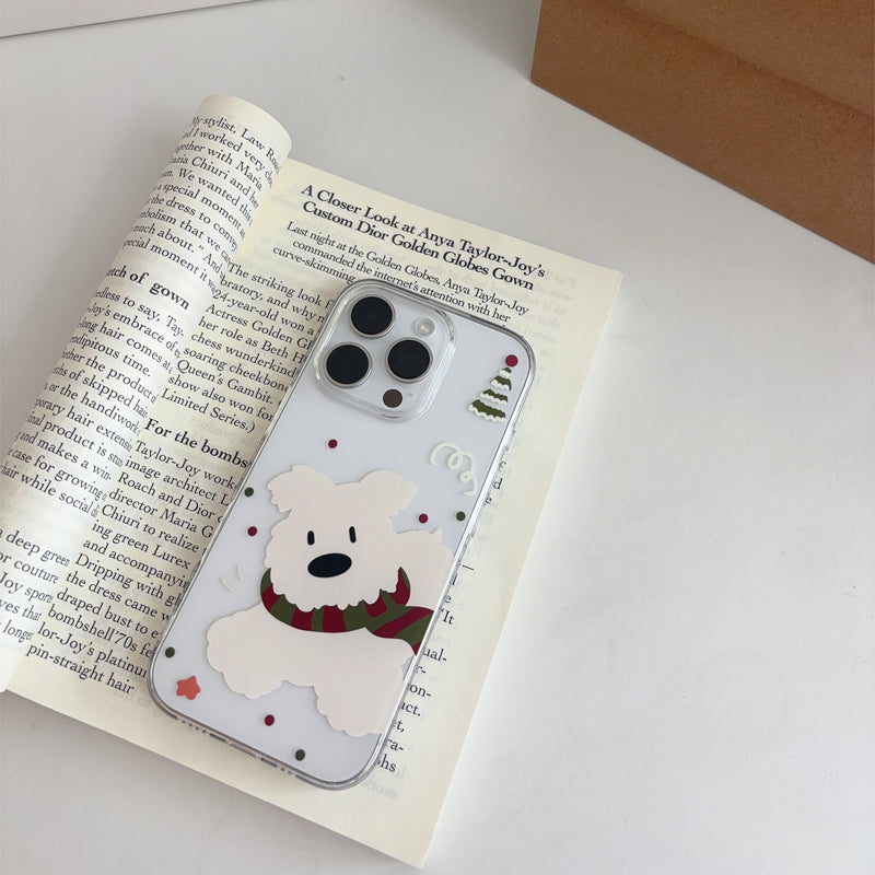 「韓国風マフラー×白い犬」iPhoneケース