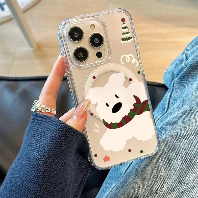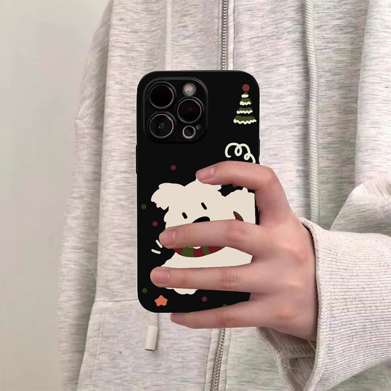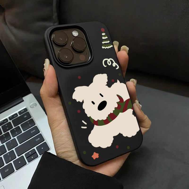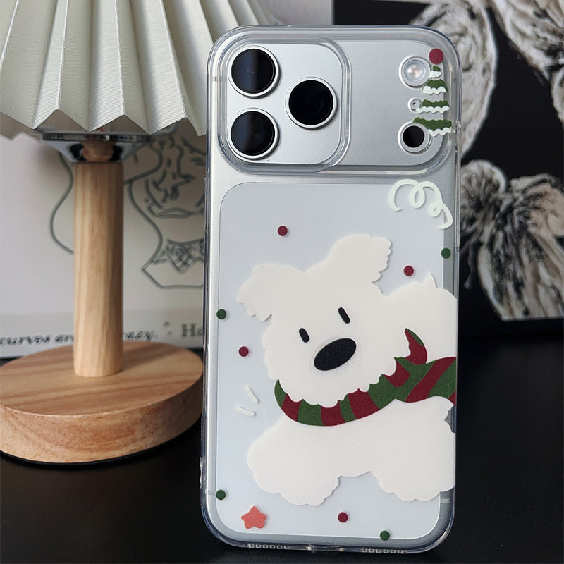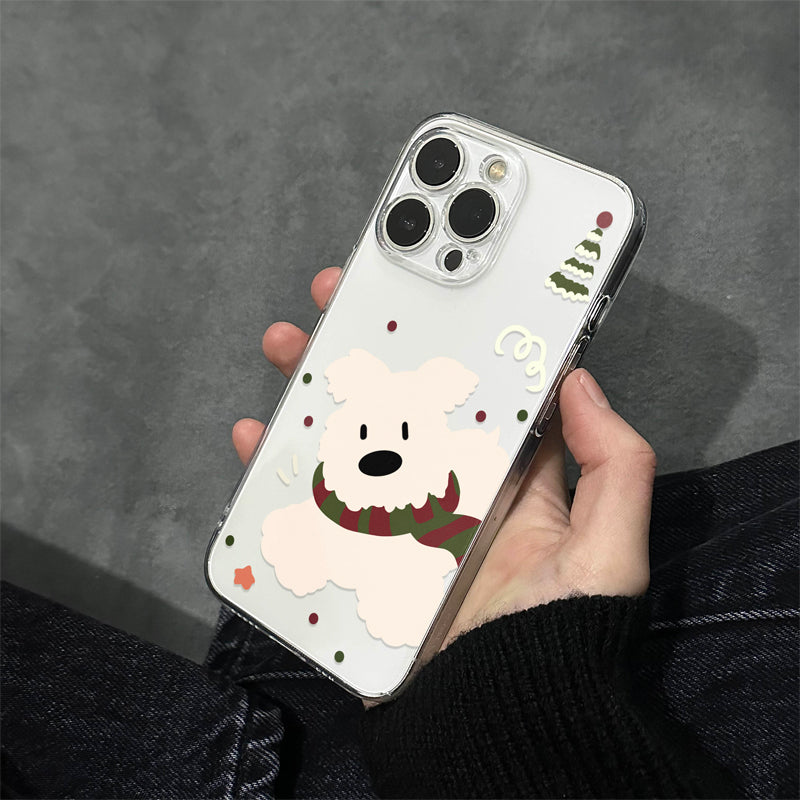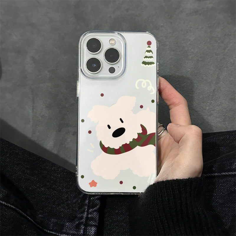 「韓国風マフラー×白い犬」iPhoneケース