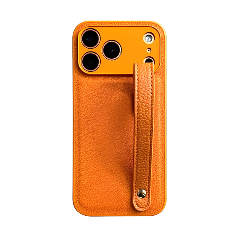 シンプルでスタイリッシュなレザー調デザインが魅力のスマホケース。上品な質感の背面にハンドストラップを備え、持ちやすく落下防止にも役立ちます。軽量かつスリムな仕上がりで、手に馴染む快適な使用感。ビジネスからカジュアルまで幅広いシーンで活躍する、機能性とデザイン性を両立したスマホケースです。