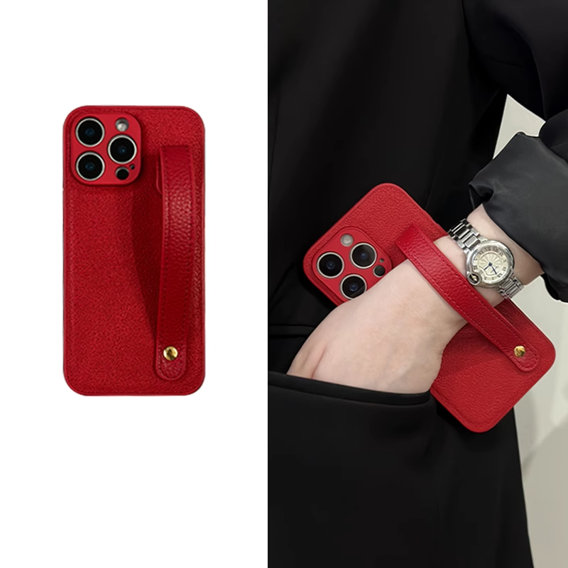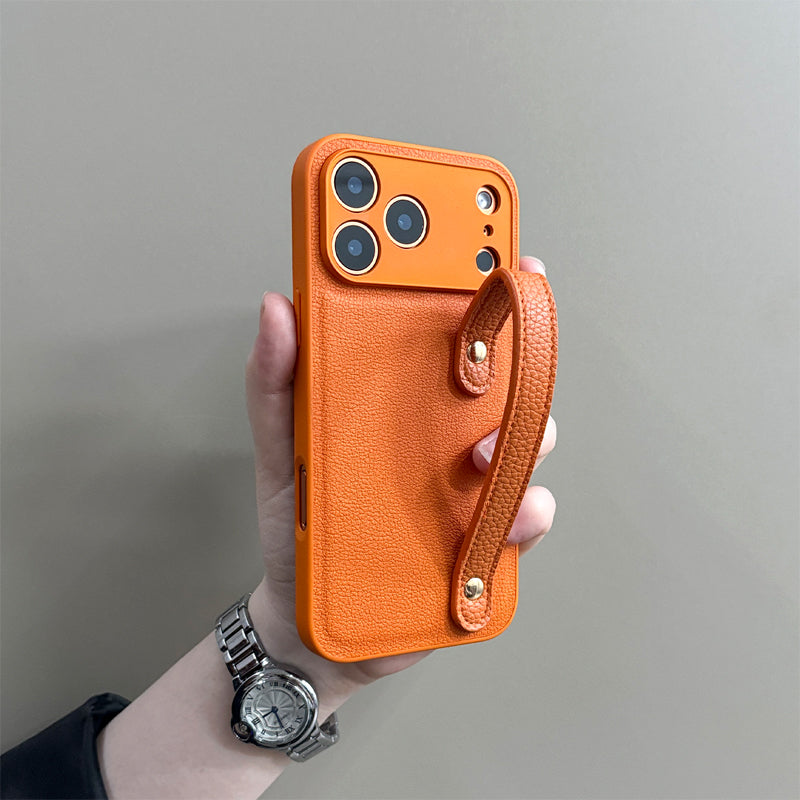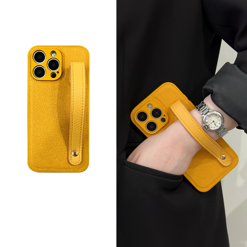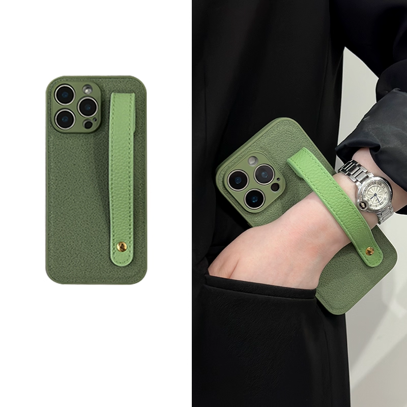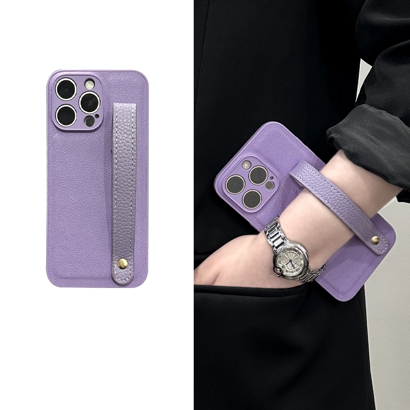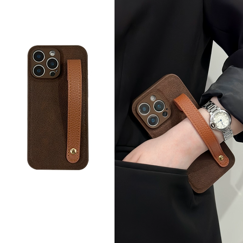 スタイリッシュシンプルレザー調ハンドストラップ付きスマホケース