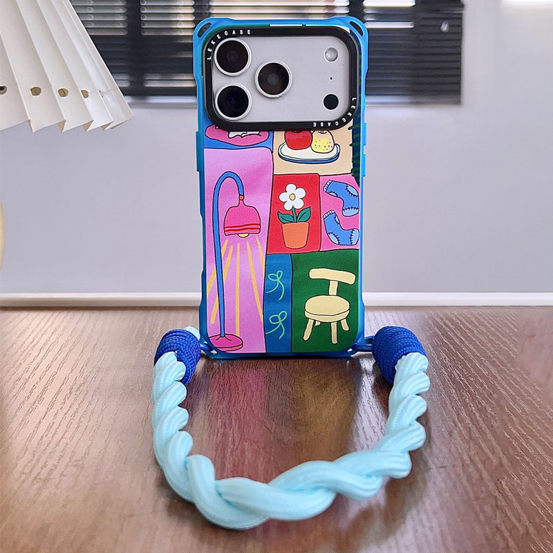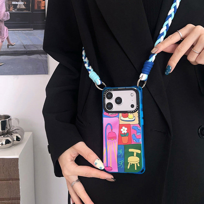 ドーパミン配色 バイカラー iPhoneケース 2WAYストラップ付き 角まで使えるデザイン