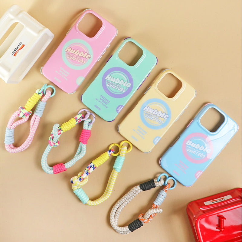 マカロンカラー バイカラーデザイン iPhoneケース マグネット対応 ハンドストラップ付き 角掛けデザイン