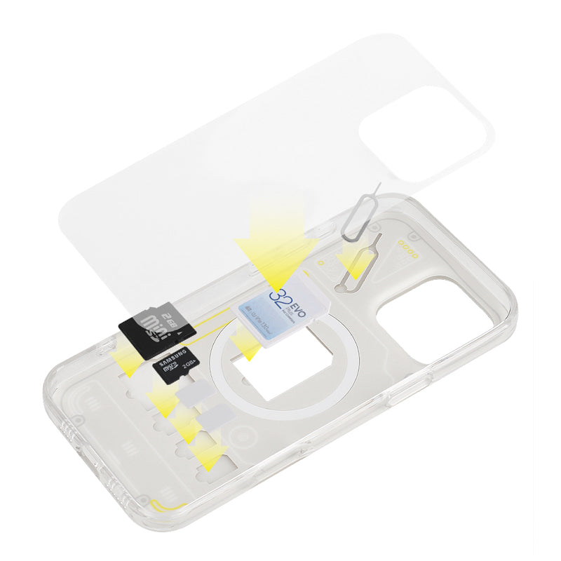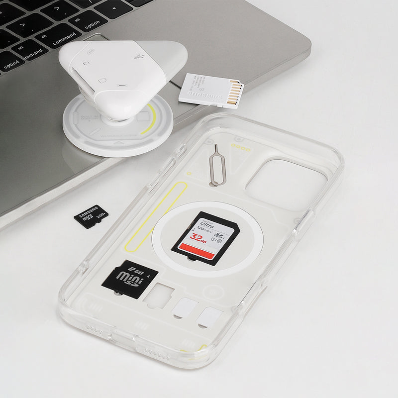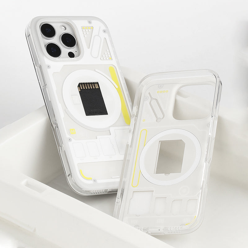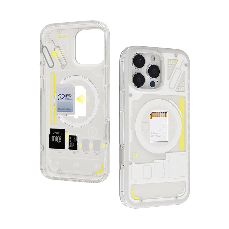 シンプルでスタイリッシュなマグネット式スマホケース。内部にはSDカード、SIMカードなどを整理して収納できる多機能デザイン。カードピンも付属しており、取り出しも簡単です。マグネット式でマグネットアクセサリーにも対応し、機能性とデザイン性を兼ね備えたアイテムです。