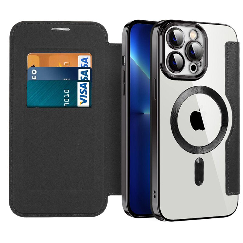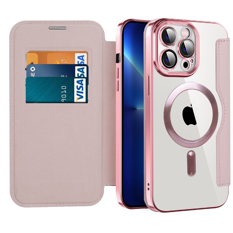 PUレザー×透明ケースウォレット&スタンド機能付きマグネット対応手帳型スマホケース