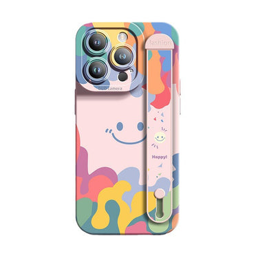 ピンクスマイルペイント風リストストラップ付きスマホケース $128.00 /