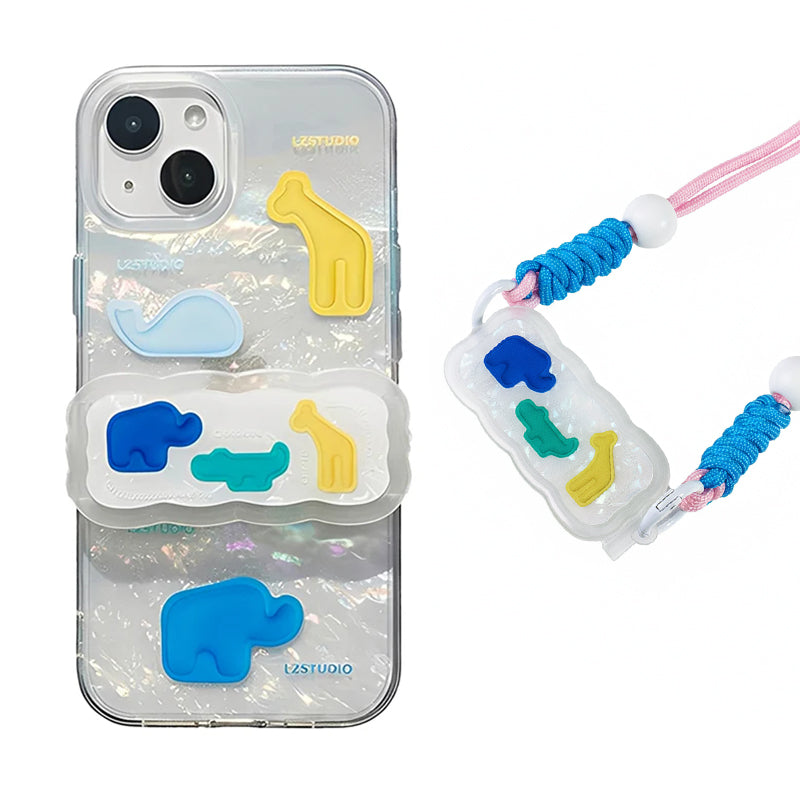 可愛いアニマルプリントシェル風ストラップ付きスマホケース