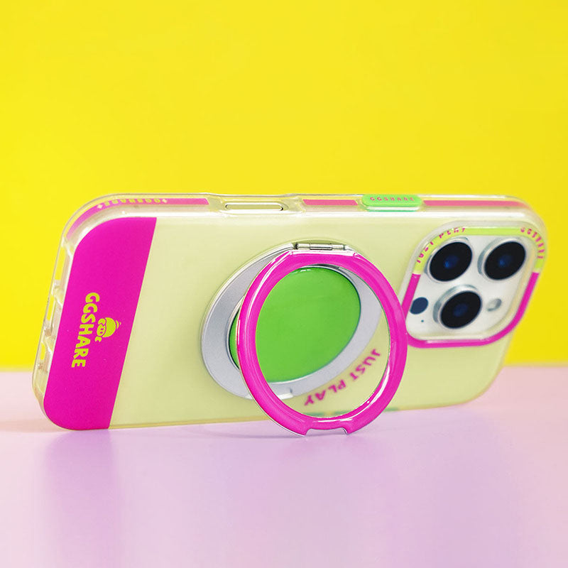 カラーブロックデザイン360°回転リングスタンド一体型スマホケース(3色展開)
