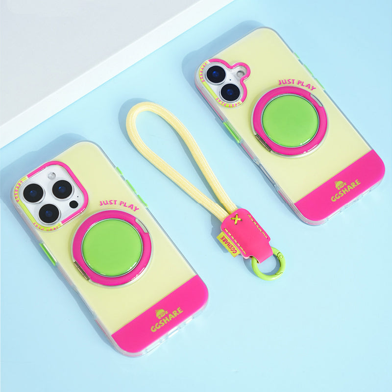 カラーブロックデザインが目を引く、360°回転リングスタンド一体型のスマホケース。配色にこだわったスタイリッシュなデザインで、コーディネートのアクセントとしても活躍します。背面のリングスタンドは360°回転仕様で、縦置き・横置きのどちらにも対応。動画視聴や通話、デスクワーク時にも安定して使用できます。使用しない時もスッキリとした見た目に。また、ストラップ付きで外出時の落下防止や持ち運びやすさも向上。3色展開で、自分のスタイルや気分に合わせて選べるのも魅力です。