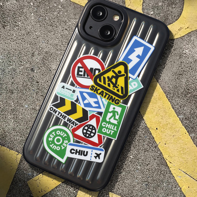 旅のワクワク感を手元で楽しめる、スーツケースモチーフのステッカーデザインスマホケースです。マグネット式で対応アクセサリーとの併用もスムーズで、デザイン性と機能性を両立した、日常使いから旅行シーンまで、幅広く活躍するスマホケースです。