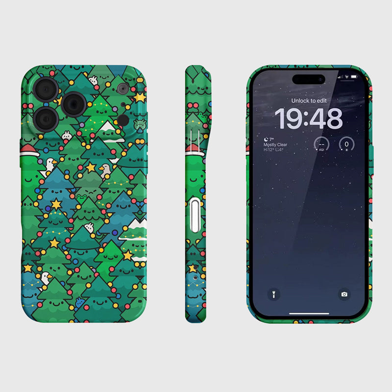 クリスマスツリーの中からキャラクターがひょっこり顔を出す、かくれんぼモチーフが可愛いフィルム加工スマホケース。142度の真空3D熱転写フィルム技術を採用し、ケース全体に美しいデザインをプリント。擦れに強く、色落ちしにくく、上品な光沢と高級感のある仕上がりで、冬のコーディネートにも自然に馴染みます。季節感たっぷりで、自分用にはもちろん、クリスマスギフトにもおすすめのクリスマス限定アイテムです。