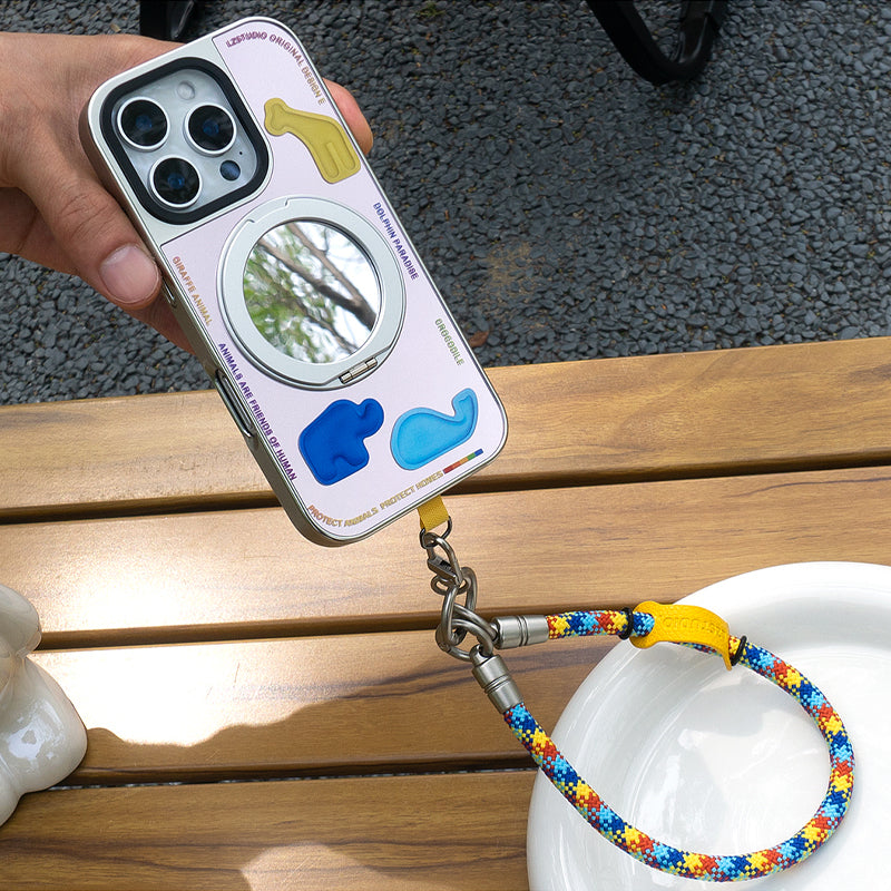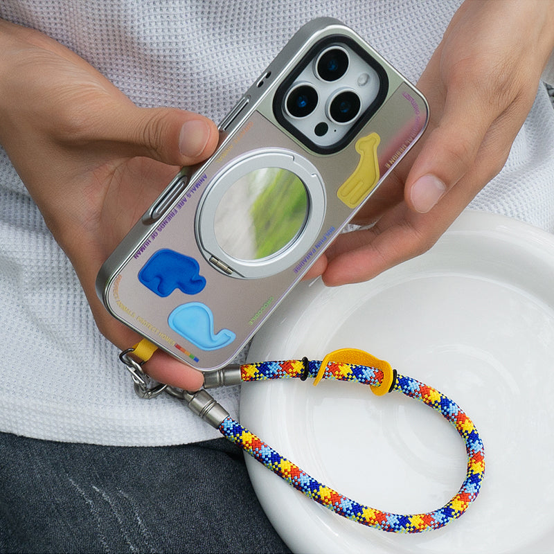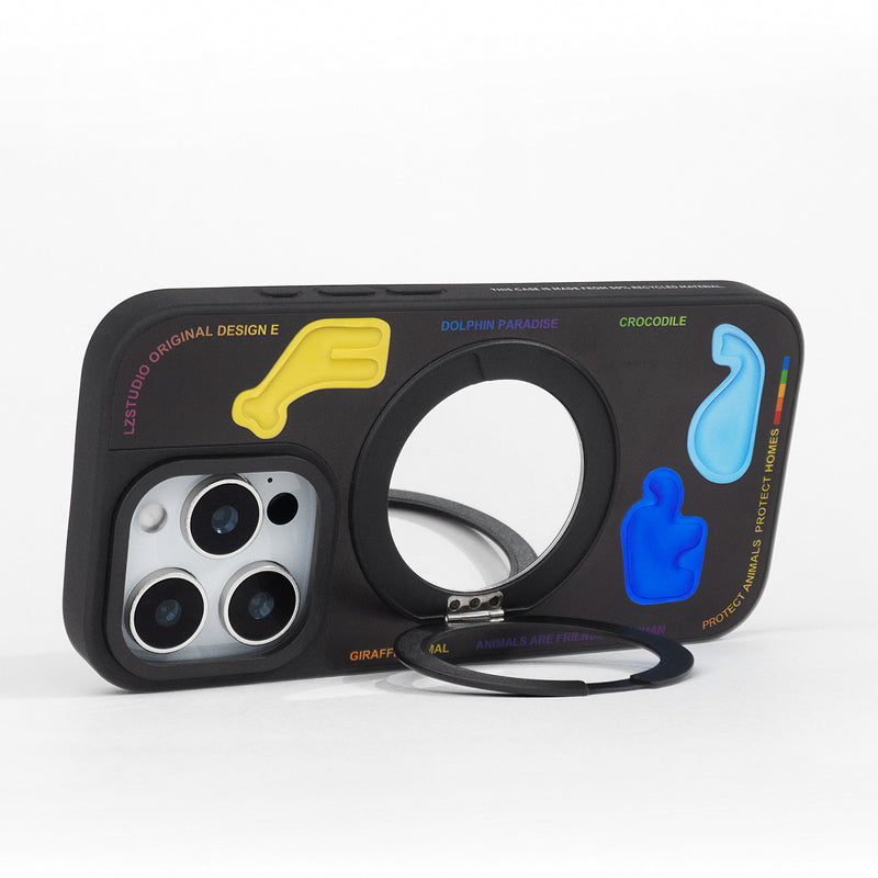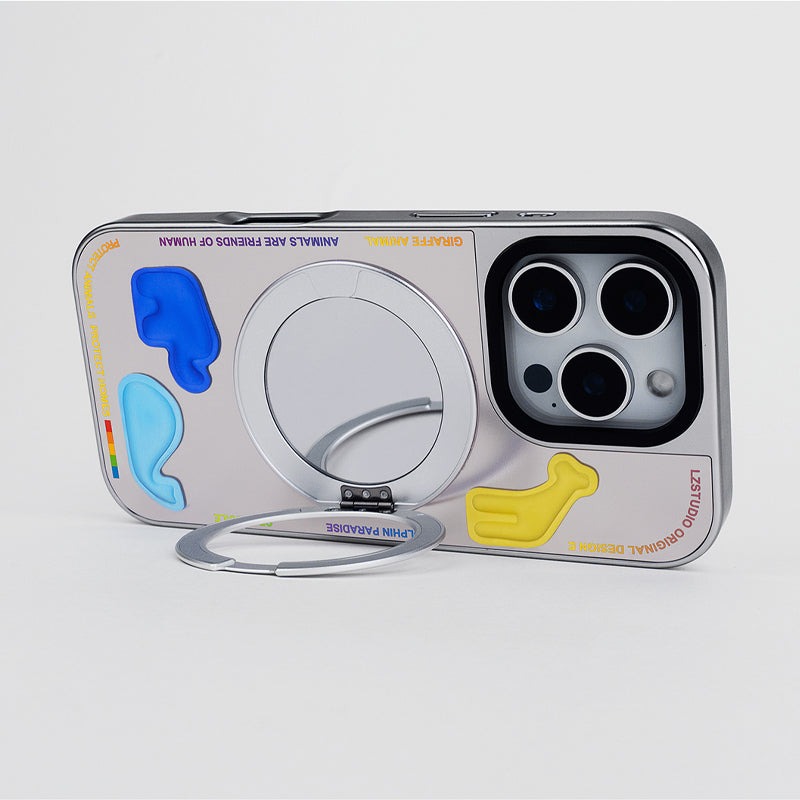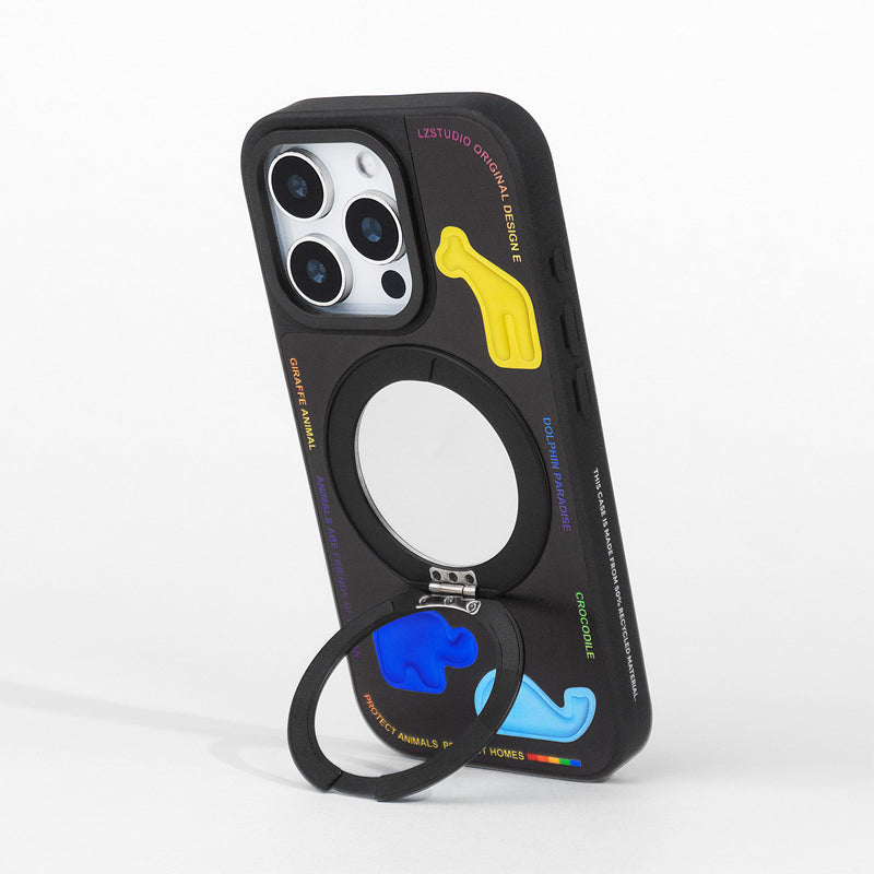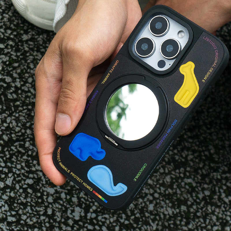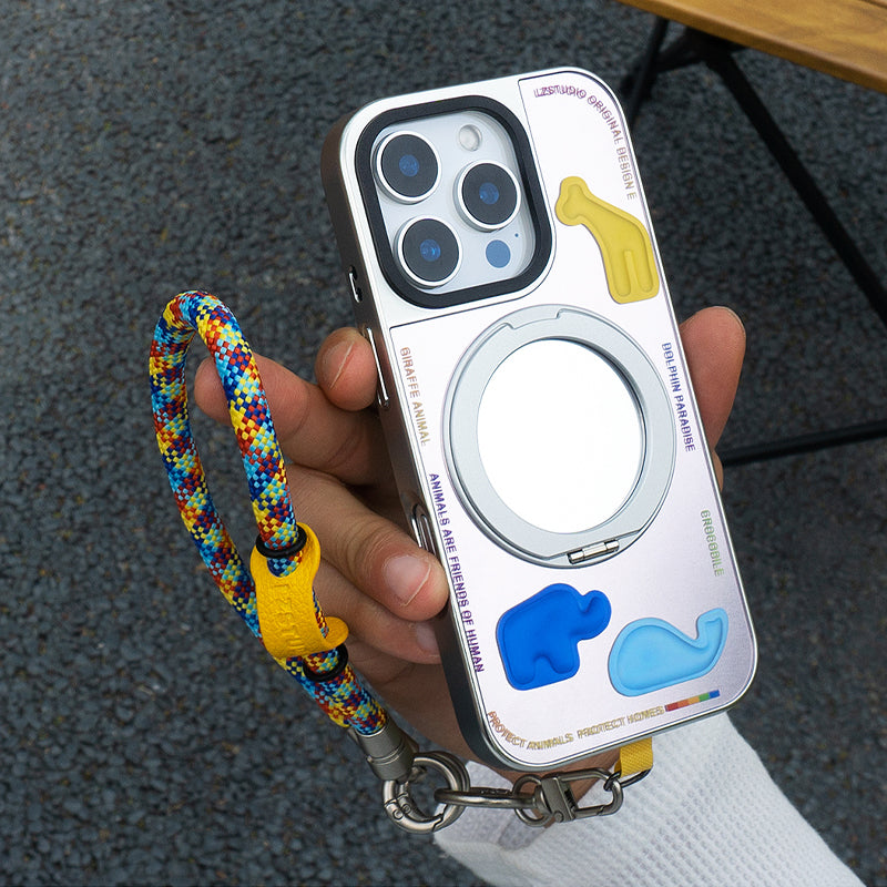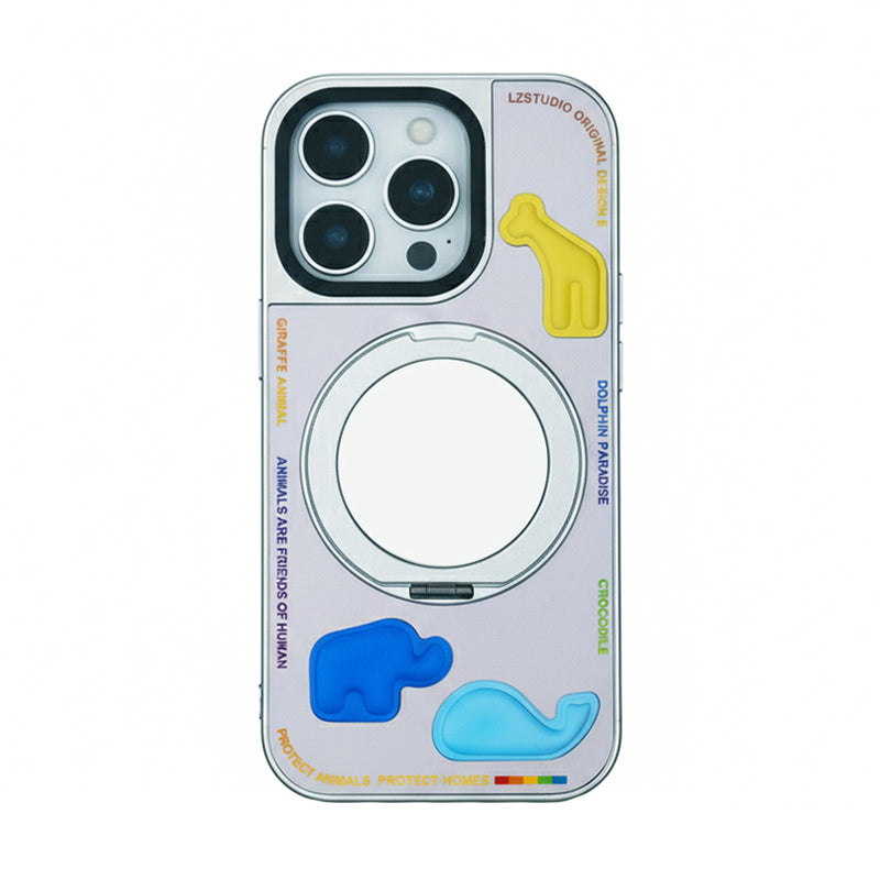 シンプル動物モチーフミラー付き回転スタンド一体型スマホケース
