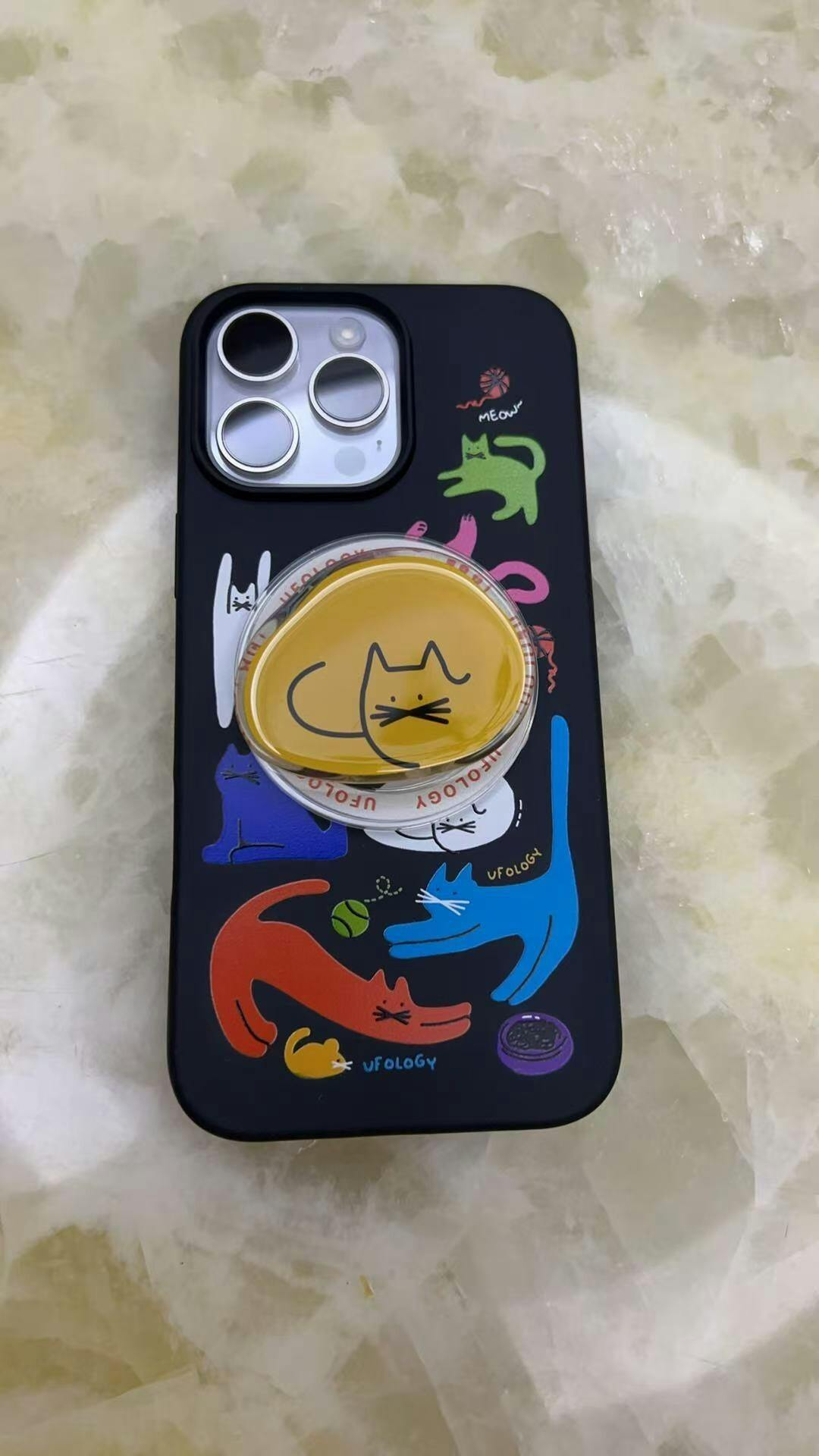 カラフル猫イラスト生分解性素材マグネット式スマホケース