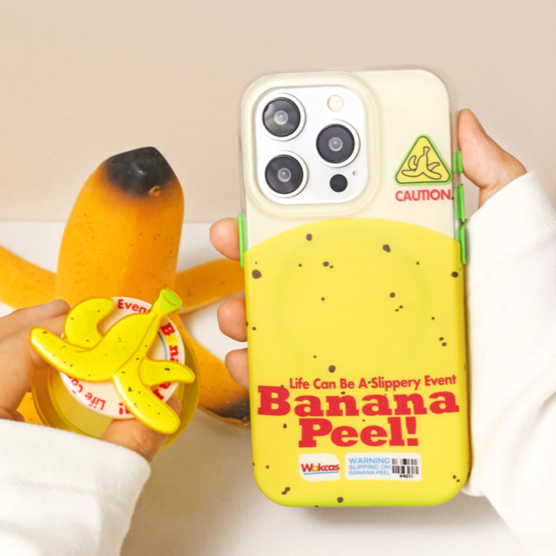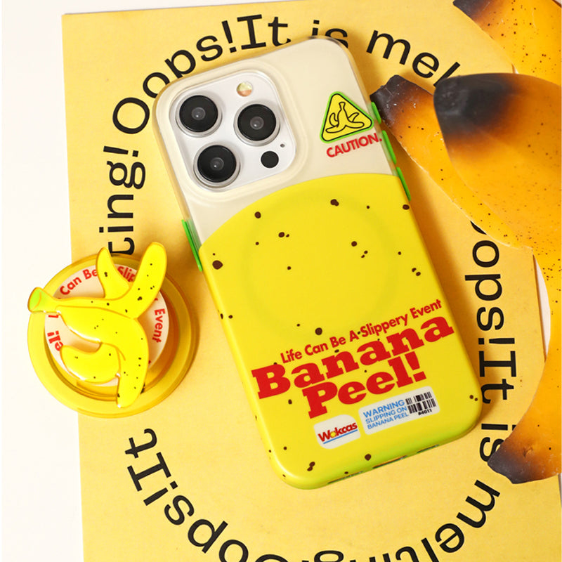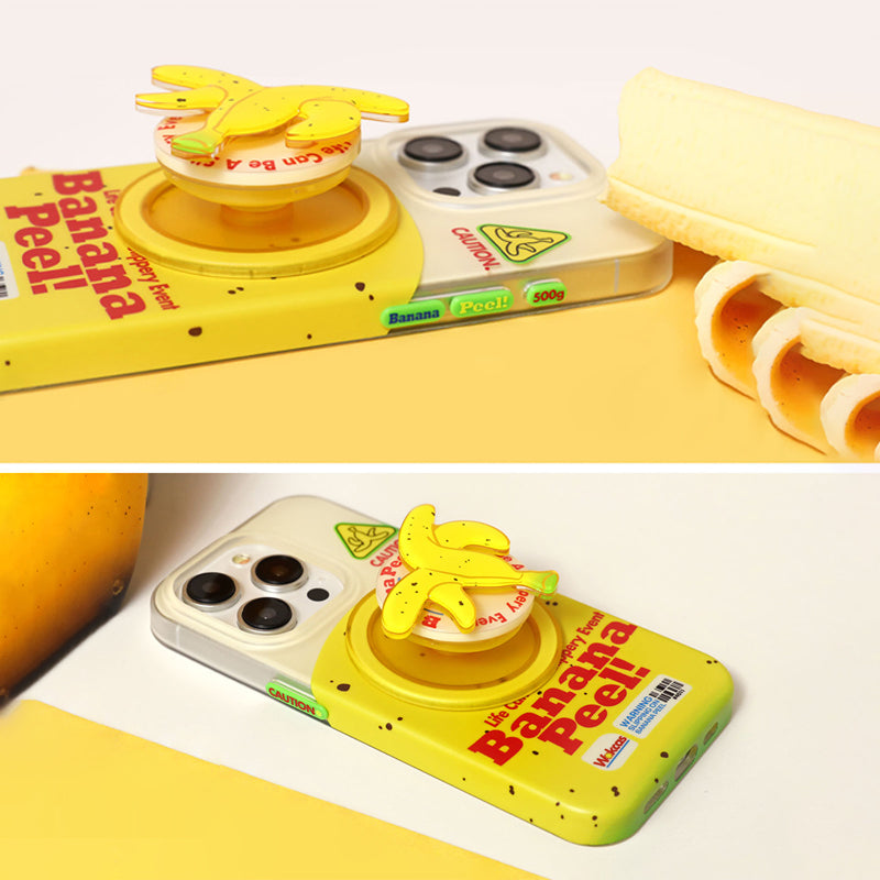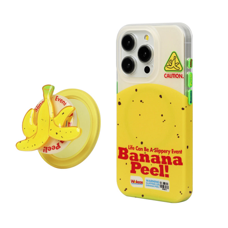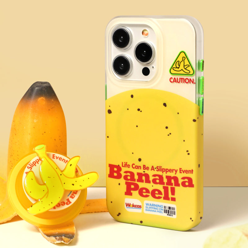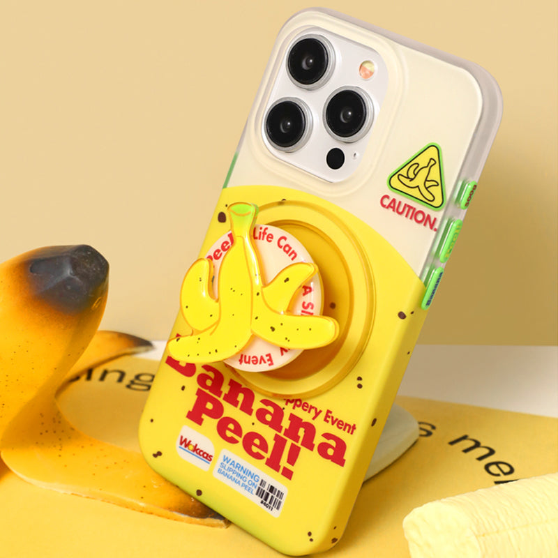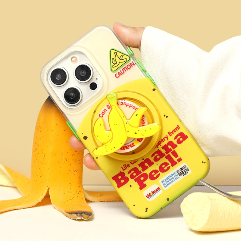 ユニークなバナナモチーフが目を引く、遊び心たっぷりのスマホケース。ぷくっと立体的なエアバッグスタンドは持ちやすく、動画視聴や写真撮影にも便利です。さらにマグネット式で充電やマグネットアクセサリーにも対応。可愛いだけでなく、日常使いに必要な機能性も兼ね備えた実用的なアイテムです。